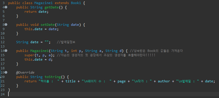 public Magazine1(String t, int p, String a, String d) { //상속받은 Book의 값들은 가져온다
