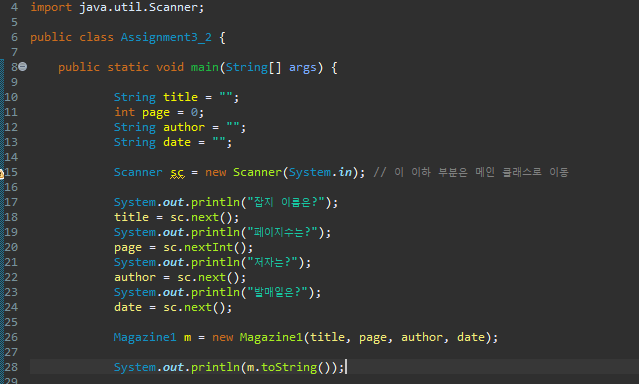 public Magazine1(String t, int p, String a, String d) { //상속받은 Book의 값들은 가져온다