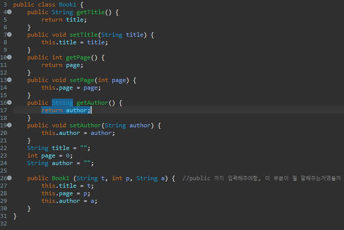 public Book1 (String t, int p, String a) { //public 까지 입력해주야함, 이 부분이 뭘 말해주는거였을까