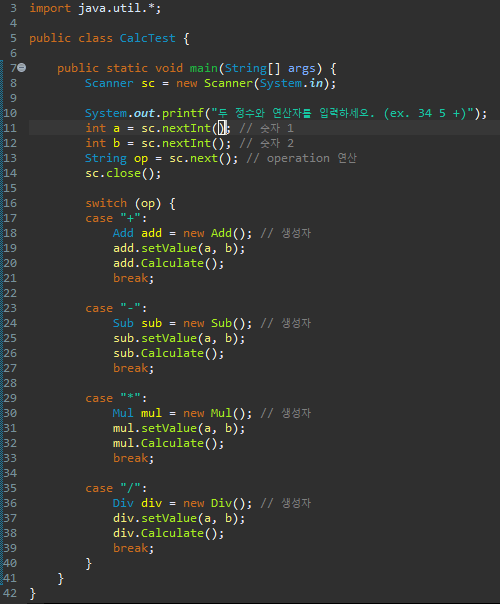 void setValue(int a, int b) { // 피연산자 설정 > this.a = a 를 하라는 말!