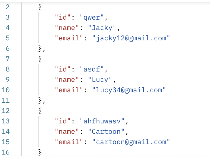 // /api/user 요청이 온 경우 응답으로 제이슨 포멧의 유저들 데이터를 불러옴