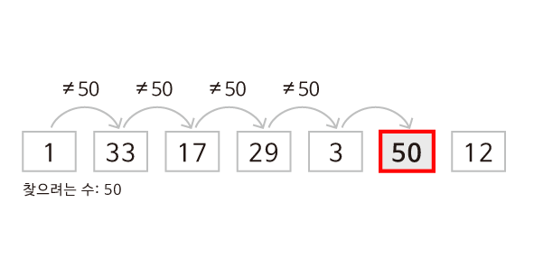 찾고자 하는 자료를 탐색하는 데 사용되는 다양한 알고리즘이 있다. 그 중 하나가 선형 탐색이다. 선형탐색은 원하는 원소가 발견될 때까지 처음부터 마지막 자료까지 차례대로 탐색한다. 이렇게 하여 선형 탐색은 찾고자 하는 자료를 찾을 때까지 모든 자료를 확인해야 한다.