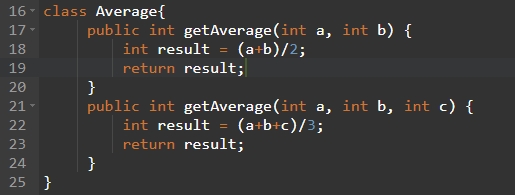 -세개의 정수를 받아서 평균을 구하는 메소드 getAverage(int a, int b, int c)를 중복정의하시오.